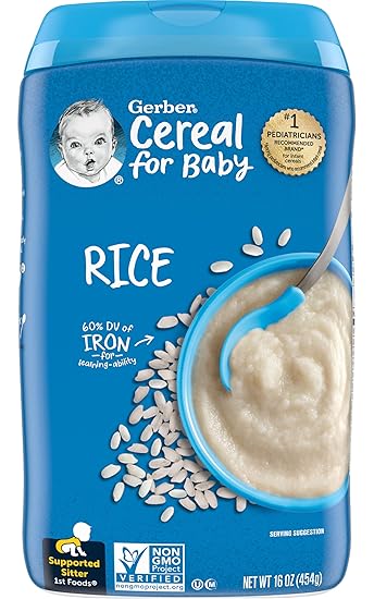 Amazon Com Gerber Cereal For Baby 1st Foods Rice Cereal Made With Essential Nutrients For Supported Sitters Non Gmo Project Verified 16 Ounce Canister Pack Of 2 Baby